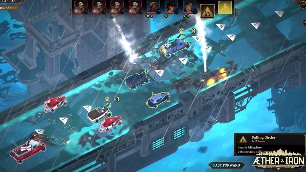 O jogo abandona o combate tradicional e aposta em confrontos táticos por turnos com veículos movidos a éter. A proposta é criativa e entrega momentos estratégicos interessantes.