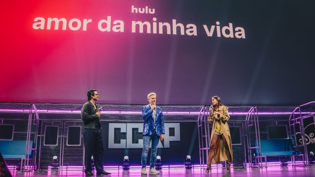 As produções nacionais marcaram presença com força no painel. Bruna Marquezine e Rômulo Estrela subiram ao palco para divulgar a nova temporada de Amor da Minha Vida. Juntos, comentaram as duas cenas cheias de intriga exibidas no painel.